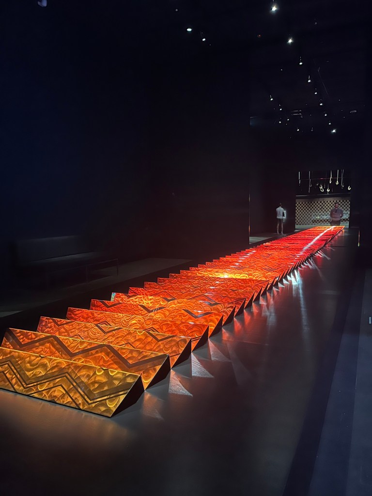 From Lisa Reihana’s cinematic poetics to Maungarongo Te Kawa’s textile interventions, from interactive AR sculpture to a video game where taniwha are not enemies to be conquered but beings to encounter, the exhibition proliferates mediums. This heterogeneity itself enacts taniwha logic: resisting containment, refusing singular form.